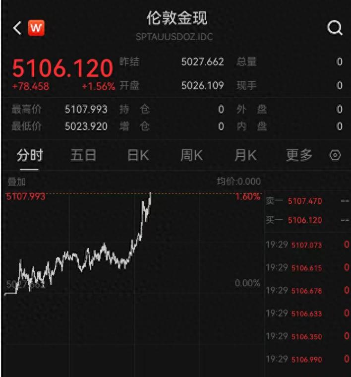 2月11日,金银价格大幅反弹。现货黄金自1月30日以来首次突破5100美元/盎司关口,触及5107.99美元/盎司高位。价格已从每盎司 4,401 美元的回调底部回升 706.99 美元。以此计算,1克黄金约上涨22.75美元(约157人民币)。截至发稿,现货黄金涨幅收窄,盘中上涨1.56%至5106.12美元/盎司。黄金期货继续上涨。截至撰写本文时,COMEX 黄金期货价格上涨 1.73%,至每盎司 5,117.9 美元。现货白银日内上涨逾6%,目前上涨6.45%至85.957美元/盎司。截至撰写本文时,COMEX 白银期货上涨 6.5%,至每盎司 85.6 美元。 (日刊经济新闻)