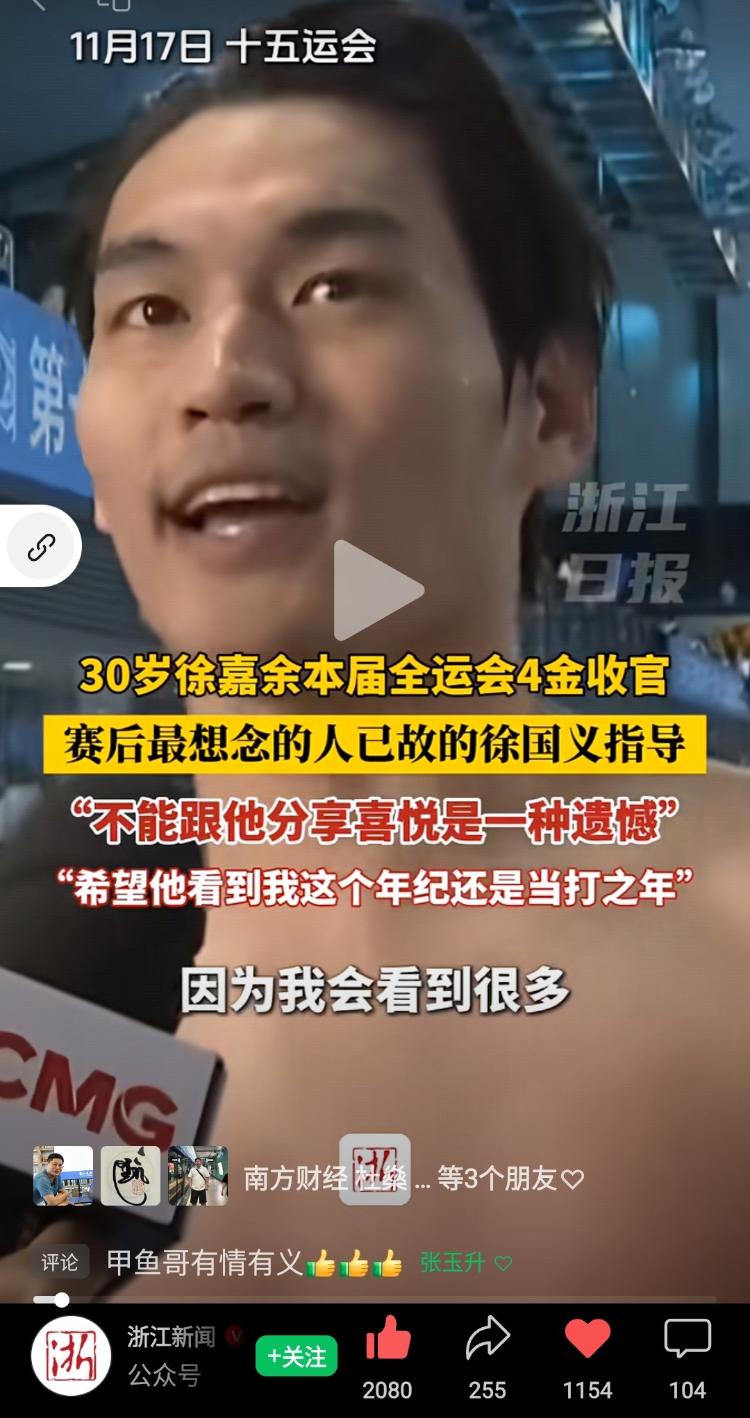 海报新闻记者张玉生撰文:第十五届全国代表大会(以下简称十五全国代表大会)于11月9日至21日在粤港澳大湾区举行,他参加了全国赛事全部比赛的报道。这段时间,我亲身经历了一些有趣的故事,这些故事是我在过去的两周里为纪念十五大而收集和记录的。 ——龟哥是一个公平、有爱心的人。 ——朱雨玲,少数具有超前思维能力的运动员之一。 ——十五大精彩语录:我用青春去创造个人成就的梦想。 ——第十五届全国大赛,见证了苏盛告别赛场,给了苏炳添一份莫大的荣誉……经过两周左右的努力,第十五届全国大赛落下帷幕。来自全国各省区的37个代表队14000余名运动员展开了激烈角逐并留下了一系列辉煌的名字:张展硕、陈玉杰、于子弟、柯勤勤、崔晨曦、张子宇、刘子涵……苏炳添、马龙、吕力娇、陈梦、孙杨、王顺、郑思维、黄雅琼……全国锦标赛历来是体坛新秀的第一朵花,也是老将的最后一舞。有些人只要愿意,就能赢得金牌,名扬天下。有些人离开时会感到悲伤和遗憾。全国大赛舞台不仅是比赛舞台,更是人生舞台。体育本来就不是我报道的领域。这是我第一次跨国界报道全国性比赛,也可能是最后一次。记得十五运会报道的12天,我在大湾区多个城市的多个地点见证了八枚金牌、六枚银牌的获得。它不仅记录了人民的辉煌和解放胜利者的无奈,也有失败者的无奈和孤独。由于工作原因,我每天都忙于关注比赛,所以很少有时间考虑全国比赛的整体情况。幸运的是,现在已经开发出了短视频,可以时不时地在手机上观看,让您了解有趣的事件。回想起我的个人微信朋友圈,十五大期间,我下意识地留下了四条个人评论。这是本文开头的四段。第一段是关于绰号“龟哥”的游泳运动员徐嘉余的。 11月18日,浙江新闻视频账号报道,30岁的徐嘉余在全国比赛中获得四枚金牌。赛后,他最怀念的就是法莱西多徐国义的指导。本次全国锦标赛,徐嘉余包揽男子仰泳全部四枚金牌,实现男子100米仰泳“四连胜”奥克全国锦标赛。他感慨道:“看到我哥,立马在视频下面留言:龟哥有爱心,公平。短短几天,这条信息就收到了一百多个点赞和推荐。第二段是关于乒乓球运动员朱雨玲的。众所周知,前国乒支柱朱雨玲在2020年患了重病,被迫退出乒坛,康复后申请考入了电子科技大学。” 2022年在中国攻读工商管理博士学位。获得居留身份后,她目前代表澳门参加乒乓球比赛,并在第十五届全国乒乓球比赛中获得女子单打第四名。 “教学可以成为一辈子的工作。”朱雨玲在第十五届全国锦标赛期间接受腾讯体育采访时说道。老他,别小看自己,说不定乒乓球就要迟到了……”涅槃重生的朱雨玲戴上眼镜离开赛场,语气柔和,言语十分深入人心。有网友评论:“朱雨玲的人气越来越高了。”她思想深刻,能面对强大的敌人,勇敢地面对生活,能清晰地把握和承载,成就她所做的一切。在思想境界上,她达到了大多数顶尖运动员都无法达到的高度。”第三段是关于第十五届全国女子百米栏锦标赛冠军刘婧妍的。连日来,刘婧阳和她妈妈的“她没有教练”的争议和解释成为网络上的热门话题。 11月19日晚,刘景阳夺冠时,我正在媒体混合区准备采访其他金牌获得者。不幸的是,我没能参加比赛。突然,一个u数量空前的记者涌入矿区,争相采访吴燕妮。我没法给他压力,就好奇地问媒体同事:“吴燕妮夺冠了吗?”有人回答我:“不是,是吴燕妮赢了。”这才知道,默默无闻的刘景阳竟然意外战胜了夺冠热门吴燕妮。赛前祈祷。后来,当他看到赛后演讲《我用青春创造自我实现的梦想》时,他立即将其发送给他的私人朋友,并称其为“十五大最好的演讲”。随后,我还会见了广州电视台的几位记者。听证会上,刘景阳母亲的感人致辞是由一位女记者发表的。广州电视台的记者慷慨地表达了对我的感谢和个人的赞扬,他说:“我认为这次暗访是整个十五大最好的采访,如果是100分,我会给120分!”不w,最后我们来说说苏炳添。 11月20日晚,我见证了苏炳添在看台上的谢幕,我见证了7万人海啸般的尖叫。现场八万人,我把苏炳添整个百米冲刺和脱靴子的讲话都拍下来了。此时,他所在的位置就在苏炳天起点的正上方,直线距离只有百米。有趣的是,当他鞠躬开始,全场激动的时候,我忍不住向旁边的记者预言,有事要发生。因为他对这场比赛的看法是正确的。苏炳添首次交接失误,广东队最终获得男子4×100米接力第四名。更有趣的是,苏炳添演讲结束离开赛场后,我在观众席上的个人视频账号“羽毛球右手”上随机发布了他演讲的最后30秒,然后对受访者进行跟进。我正忙着把它贴上来。结束采访后,他抽空开通了个人视频账号,而《在赛场见证苏炳添告别》的短视频居然获得了上百个点赞。在发表本文时,这段 30 秒的原始视频有近 50,000 次观看。吸引了数百人的注意。我开玩笑说,谢谢苏炳添带来的流量。 11月20日晚,我在看台上见证了苏炳添的谢幕。
