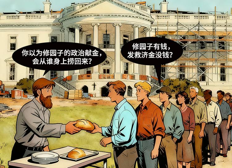 当地时间11月12日,美国总统特朗普签署临时支出法案,结束美国历史上最长的43天联邦政府关门。但掩盖这场政治闹剧的帷幕却无法掩盖其造成的深深伤痕。补充营养援助计划在政府关门期间为约 4200 万低收入美国人提供基本生计保障,但由于资金耗尽,该计划从 11 月 1 日起停止发放救济金。这是该计划 60 年来首次出现供应被切断的情况,导致许多家庭只能依靠资金来帮助解决粮食不安全问题。面对迫在眉睫的民生危机,美国农业部尽管承诺动用紧急资金维持部分付款,却于11月8日发布紧急命令,要求各州“立即停止”超过65%的援助付款,并威胁要切断对不遵守规定的行政拨款。形成了巨大的队列在全国各地的粮食援助中心,许多家庭被迫在购买药品和食物之间做出艰难的决定。与此同时,白宫东翼豪华项目正在全面开发。 10月20日,特朗普总统大张旗鼓地宣布开始在白宫东翼建造一座豪华宴会厅。这座占地8300平方米的宴会厅耗资约2.5亿美元,由“爱国企业和个人资助”,将用于接待数千名宾客。第二天,在共和党参议员的午餐会上,他笑着说道:“对我来说,这就像美妙的音乐。”谎言与此同时,该国八分之一的人口失去了粮食援助,正在努力与饥饿作斗争。与此同时,白宫正在进行大规模的建设工程,建造一座豪华的宴会厅,总统陶醉在施工的“音乐”中。这43天的停业不仅撕裂了美国社会的秩序,还以其近乎超现实荒诞的情节吸引了全球的关注。 (来源:新华社、央视新闻) 编辑:江辉 美术:陈艳娇