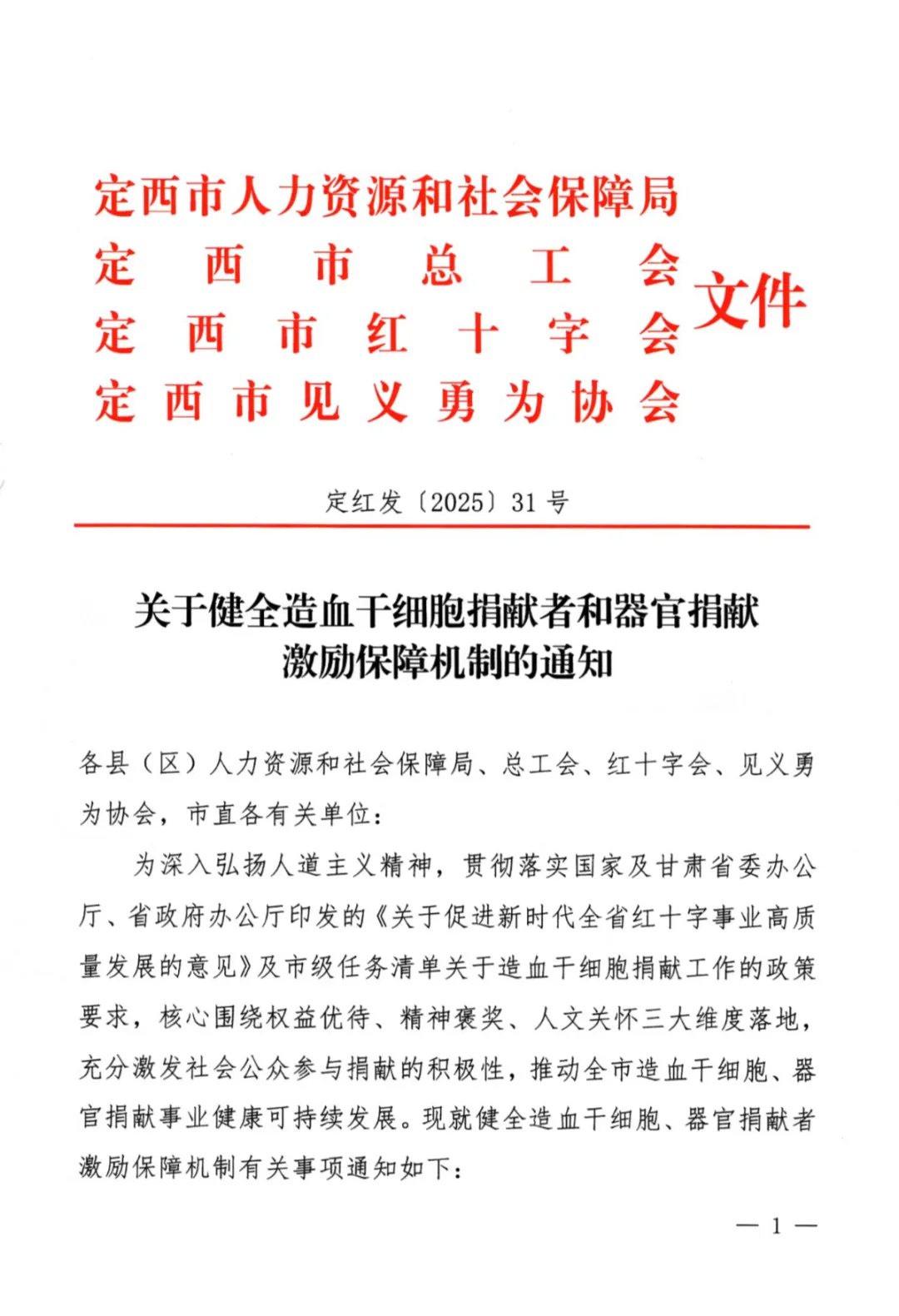 近日,甘肃省定西市、广东省汕尾市相继出台条例,将人体器官捐献列入“见义勇为”评价对象。甘肃省定西市为进一步弘扬人道主义精神,践行社会主义核心价值观,定西红十字会积极探索创新捐赠激励机制,会同市人社办联合印发了《关于完善造血干细胞捐献者和器官捐献激励保障机制的通知》(定红发[2025]31号)。工会联合会、志愿者协会。 《通知》明确规定,造血干细胞捐献者可出示中国骨髓库、甘肃省红十字会颁发的荣誉捐献证书,逝世者器官捐献者家属可出示中国人体工程学会颁发的捐献证书。捐赠管理中心。造血干细胞捐献者获得市县司法协会颁发的“正义价值(造血干细胞捐献)”称号,已故器官捐献者获得“正义价值(器官/组织捐献)”称号,其家属还可同时享受相关政策待遇。作为政府雇员的成功捐赠者将优先获得年度审查和职业发展。同时,红十字会积极鼓励造血干细胞捐献者参加州、市工会联合会组织的康复活动,将精神刺激与身体护理和精神充分结合起来。此次活动充分展现了“捐赠是慈善之举,捐赠是见义勇为”的社会价值观。这对捐赠者的无私奉献表示赞赏,有利于营造支持捐赠、珍视生命的社会氛围。广东省汕尾市近日,在广东省汕尾市红十字会的积极推动和市委政法委的大力支持下,汕尾市将无偿造血干细胞捐献、人体器官捐献等救死扶伤的慈善行为纳入“见义勇为”范围,成为广东省首个出台此项政策的地级市。这不仅是对“人道、手足、奉献”红十字精神的生动诠释,也是弘扬社会主义基本价值观的具体实践。也是对“勇于助人”的中华传统美德的良好传承。这将鼓励和动员更多的人成为自愿的造血干细胞和器官捐献者,挽救更多患者的生命。目前,造血干细胞移植是挽救患者生命的重要治疗手段患有血液病,器官移植是挽救器官衰竭患者的重要方法。造血干细胞和器官移植的主要途径是通过志愿者的无偿捐赠。造血干细胞捐献和器官捐献是无私牺牲、拯救生命的高尚行为。他们诠释了社会大爱,对于弘扬人道主义精神、拯救广大严重血液病、器官衰竭患者具有重要意义。目前,山东省东营市、滨州市、泰安市、河南省漯河市、甘肃省定西市、广东省汕尾市等已将器官捐献纳入“勇敢正义之举”评价。这是对生命最高尚的致敬。也是对人性光辉最深刻的诠释。当我们看到默默的自我牺牲的美好时,让我们不要忘记自我牺牲的价值。生命结束了,但爱和希望永存。 (中国官方人类器官捐献微信公众号)