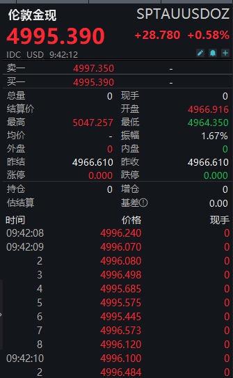 中新经纬2月9日电 9日早盘,现货黄金再次站上5000美元区间,国产品牌金饰品克价突破1560元。截至发稿,伦敦金小幅下跌,目前交投于每盎司4995.39美元,上涨0.58%。截至发稿,上海金报1124.78元/克,涨幅3.62%。国内几个黄金首饰品牌的价格都在飙升。 9日上午,古寺纯金首饰价格为每克1566元。周大福珠宝及工艺品的纯金价格为每克1542元。周珊珊的纯金首饰价格为每克1568元。朝空寺的纯金(首饰)价格为每克1542元。菜百999纯金首饰的定价为1530元/克。周大福小程序截图、周三桑小程序截图、朝艾莎小程序截图图、老庙黄金官网截图、菜百宝石小程序截图。世界黄金协会高级市场分析师Louise Street此前表示,由于经济和地缘政治不确定性在2026年几乎没有减弱的迹象,黄金需求的强劲势头预计将持续。今年早些时候,金价首月首次突破5000美元/盎司,再次凸显了其在不确定时期作为避险资产的重要作用。浙商证券分析,从短期来看,黄金白银面临风险偏好变化带来的潜在流动性冲击和扰乱。短期金银价格波动性可能加大,趋势信号波动较大,不确定性较强。对于黄金来说,这种长期配置逻辑仍然存在。中长期需关注央行对金价的积极推动力s。预计各国央行资金仍将保持净流入。另一方面,在全球资产配置高波动性、高不确定性的框架下,低信用风险资产配置需求将逐步恢复。华泰证券研报认为,2022年开始,央行等金融机构仍有可能在逆全球化背景下进行资产重新配置。继续增加黄金配置将是中长期金价上涨的基础。个人和金融机构配置黄金的持有量预计将逐步增加。随着全球预算赤字正常化以及主要国家货币体系稳定性屡遭挑战,黄金在全球金融资产中的份额可能会进一步增加。如果可投资黄金的比例超过2011年的高点(3.6%),并在2026年至2028年间达到4.3-4.8%,金价将上涨预计在此期间将上涨至每盎司 5,400-6,800 美元。
